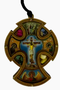 Small crosses made for cars, serving as a symbol of protection and prayer during travel.