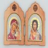 Foldable wooden diptych with richly decorated metal icons of the Mother of God with Christ Child and Christ.