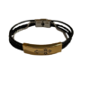 Black leather bracelet with stainless steel details and cross, created as a dignified reminder of inner strength and trust in God.