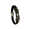 Braided black leather bracelet with stainless steel details, created as a dignified reminder of inner strength and trust in God.