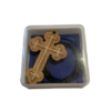 Orthodox wooden cross with engraved details and a dark cord in a transparent box, ideal for wearing around the neck or as a modest blessing gift.